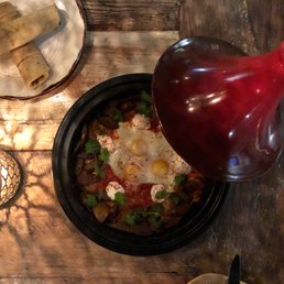 Ordered the hummus and shakshuka (without lamb to make it vegetarian). Everything was incredible. My only wish is that they'd offer to replace the lamb with something else or reduce the price if ordering something like the shakshuka as vegetarian. Other than that, the service and ambiance was great!